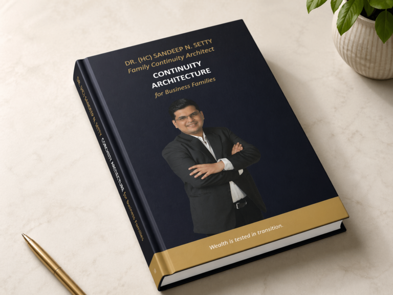 Dr. (HC) Sandeep N. Setty is a Bengaluru-based Family Continuity Architect advising business families, founders, promoter families, and affluent clients where wealth, ownership, control, liquidity, succession, and family decision-making have become too important to leave informal.